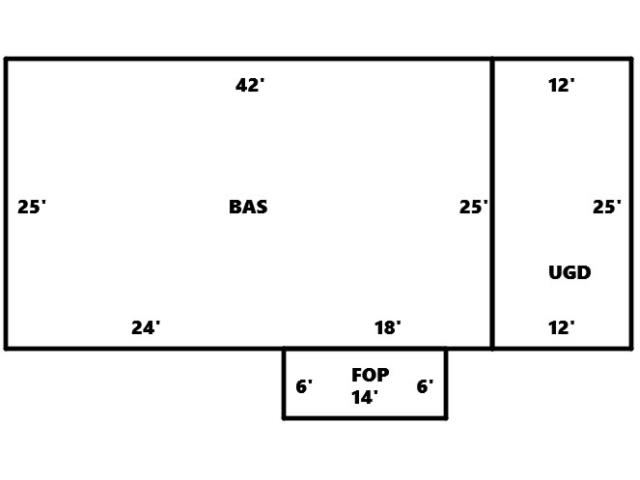 BUILDING DIMENSIONS UGD=W12S25E12N25Area:300;BAS=W42S25E24E18N25Area:1050;FOP=S6E14N6W14Area:84;TotalArea:1434