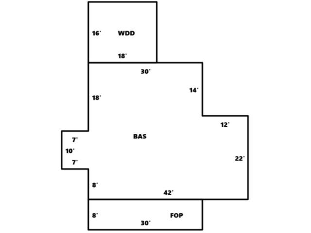BUILDING DIMENSIONS BAS=W30S18W7S10E7S8E42N22W12N14Area:1414;FOP=S8E30N8W30Area:240;WDD=N16E18S16W18Area:288;TotalArea:1942