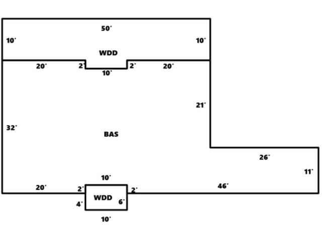 BUILDING DIMENSIONS WDD=W50S10E20S2E10N2E20N10Area:520;BAS=W20S2W10N2W20S32E20N2E10S2E46N11W26N21Area:1846;WDD=S4E10N6W10S2Area:60;LLU=Area: :312;FGD=Area:324;TotalArea:3062