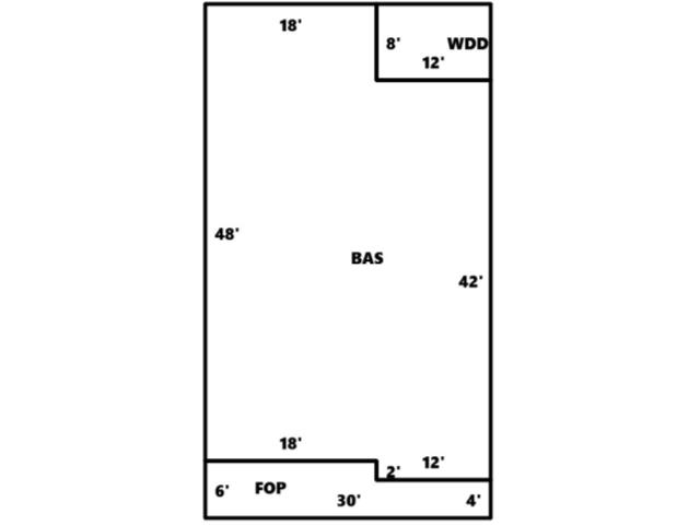BUILDING DIMENSIONS WDD=W12S8E12BAS=W12N8W18S48FOP=S6E30N4W12N2W18$E18S2E12N42$N8$.