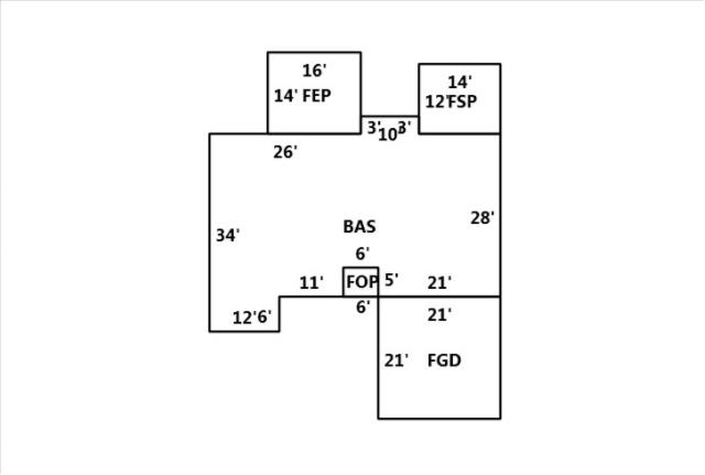 BUILDING DIMENSIONS FSP=W14S12E14N12Area:168;BAS=W14N3W10S3W26S34E12N6E11E6E21N28Area:1502;FEP=N14W16S14E16Area:224;FOP=N5E6S5W6Area:30;FGD= =S21E21N21W21Area:441;TotalArea:2365