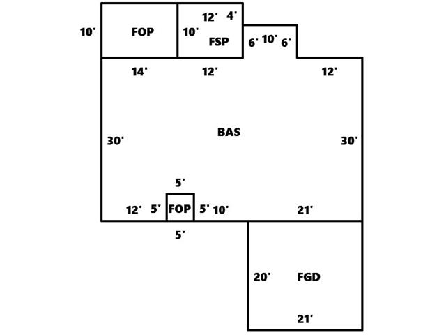 BUILDING DIMENSIONS BAS=W12N6W10FSP=N4W12S10E12N6$S6W12FOP=W14N10E14S10$W14S30E12FOP=N5E5S5W5$N5E5S5E10FGD=S20E21N20W21$E21N30$.